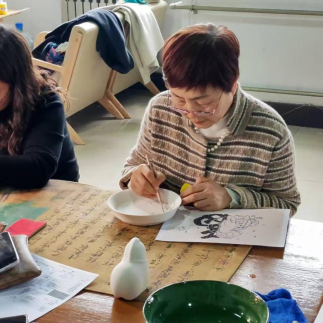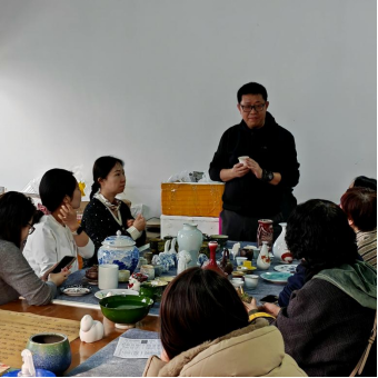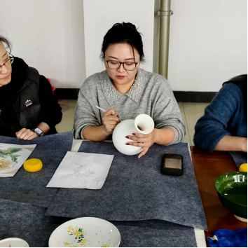 活动伊始,刘东明、刘东两位老师从陶瓷的历史源流、品类特点、材质特性等方面展开细致讲解,从古朴的彩陶、精美的青瓷到灵动的彩绘瓷,娓娓道来陶瓷背后的文化故事;同时结合实操要点,讲解了陶瓷绘制的颜料特性、笔法技巧、色彩搭配等关键知识,针对绘制中易出现的晕色、线条不匀等问题进行示范解答,让大家快速掌握陶瓷绘制的基础要领,为后续创作筑牢基础。