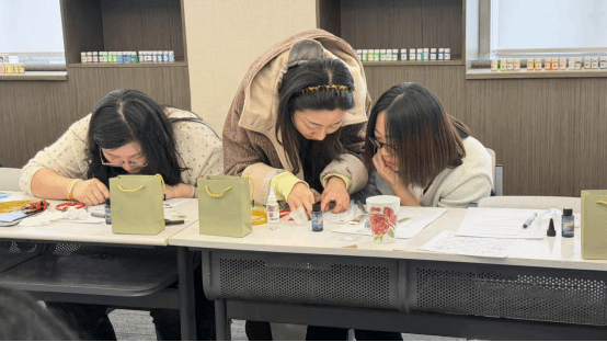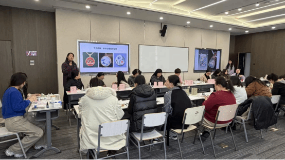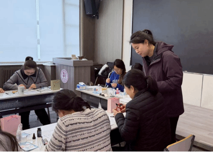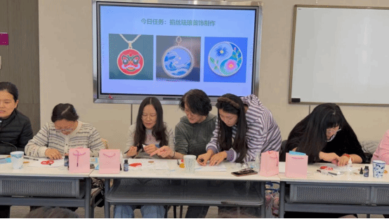 活动当日,女教职工欢聚一堂,在艺术学院王晓娟、李芹两位教师的指导下,开启了一场沉浸式的非遗艺术创作历程。老师们以掐丝珐琅这一国家级非物质文化遗产为创作载体,带领大家在近三小时的创作时光里,亲手体验传统工艺的制作精髓,将细腻的心思与巧慧的双手相结合,让绚丽的色彩与精致的丝纹碰撞出独特的艺术火花,在动手实践中体悟非遗文化的深厚底蕴与手工创作的别样乐趣。
