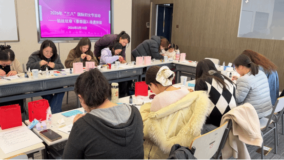 本网讯【通讯员:工会荣娟、艺术学院王晓娟、李芹】3 月 13 日下午,天津职业技术师范大学工会举办 “春风暖巾帼,匠心筑未来”“三八”国际妇女节系列活动之非遗掐丝珐琅体验,在 A 教 522 教室圆满收官。此次活动以非遗为纽带,以匠心为内核,将传统工艺的魅力与节日的温情相融,为近30名女教职工献上了一场兼具文化底蕴与手工乐趣的节日盛宴,让大家在指尖体验中感受非遗之美,在创作交流中收获节日喜悦。