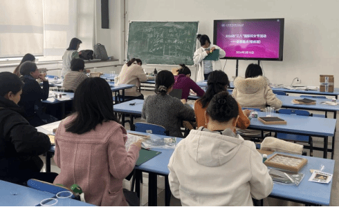 活动当日,二十余名女教职工汇聚一堂,在艺术学院方嫱、冯琳两位教师的指导下,开启了一场沉浸式的艺术创作历程。教师们以锡纸为媒介、以匠心为笔触,在两小时的创作时段内,将平凡的锡纸雕琢成兼具美感与温情的艺术佳作,于动手实践中体悟节日的愉悦与艺术的魅力。
