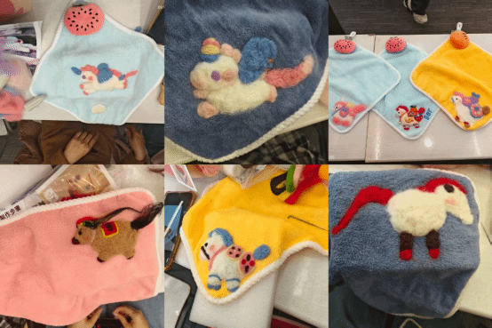 活动现场气氛融洽,动画系副教授刘芳老师为各位女教职工详细讲解了羊毛毡非遗技艺的历史渊源与制作技巧,涵盖铺毛、塑形、戳扎、装饰等方面,并进行了手把手的操作指导。参加活动的老师们充分发挥艺术创意,将蓬松的羊毛反复戳刺,精心制作成平面或立体的精美配饰。在沉浸式的创作过程中,老师们深切感受到传统手工艺的独特魅力,彼此交流创作心得,现场氛围温馨且热烈。
