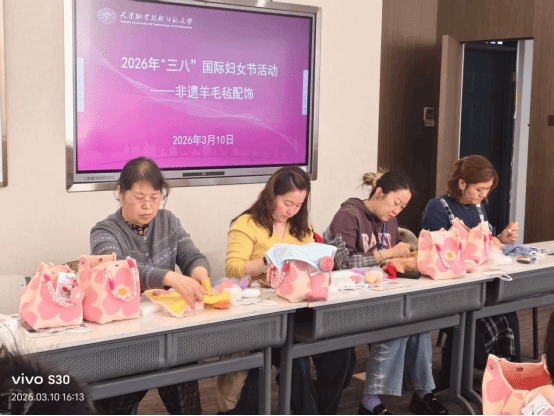 本网讯【通讯员:工会岳丽馨、艺术学院刘芳】为庆祝“三八”国际妇女节,传承中华优秀传统文化,3月10日,由艺术学院承办的非遗羊毛毡配饰制作活动于A522圆满结束,为全校女教职工送上了一份独具匠心的节日祝福。